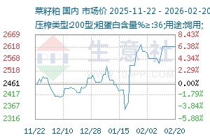 菜粕市场价格走势图表 据生意社商品行情分析系统:2月9日菜粕市场均价为2558元/吨,2月12日菜粕市场均价...[详细]